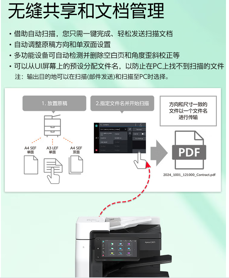 | 自动双面打印ApeosC3071CPS支持 | 分辨率600dpi*2400dpi |