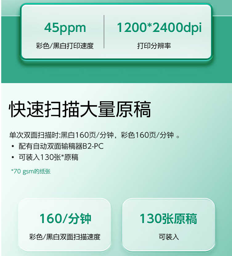 | 扫描分辨率600 | 顔色类型专业高速办公型彩色多功能一体机 |
