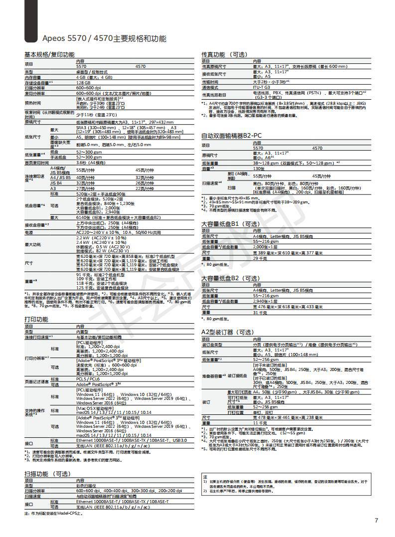 | 主要功能打印/复印/扫描 | 网络打印Apeos5570CPS:有线网络 |