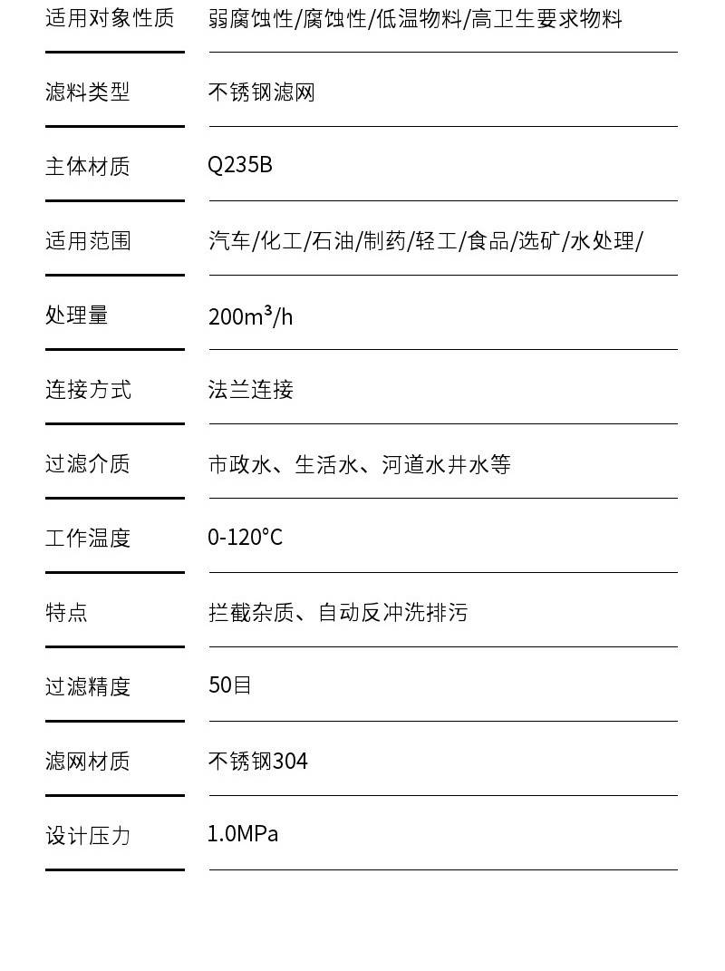 | 滤网材质304不锈钢 | 安装方式立式安装、卧式安装 |