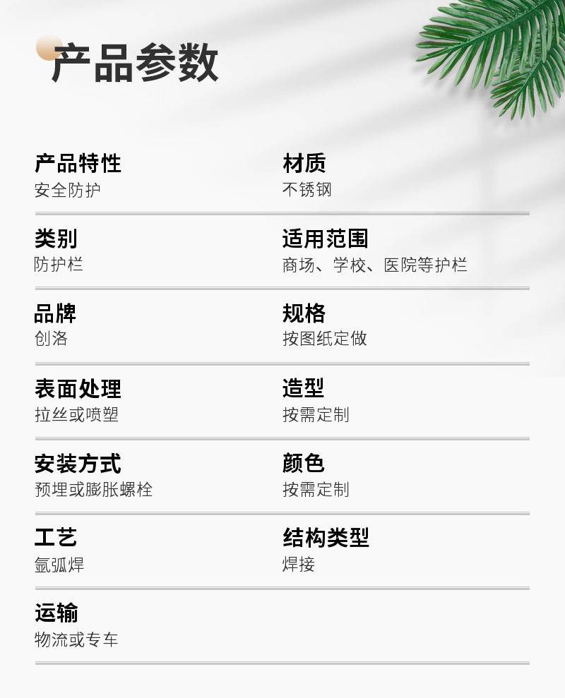 | 类别防护栏 | 适用范围商场、学校、医院等护栏 |