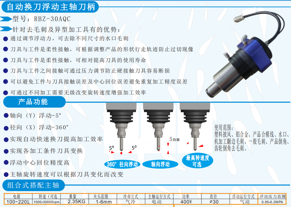 RBZ-30AQC浮动自动换刀主轴机器人去毛刺浮动去毛刺