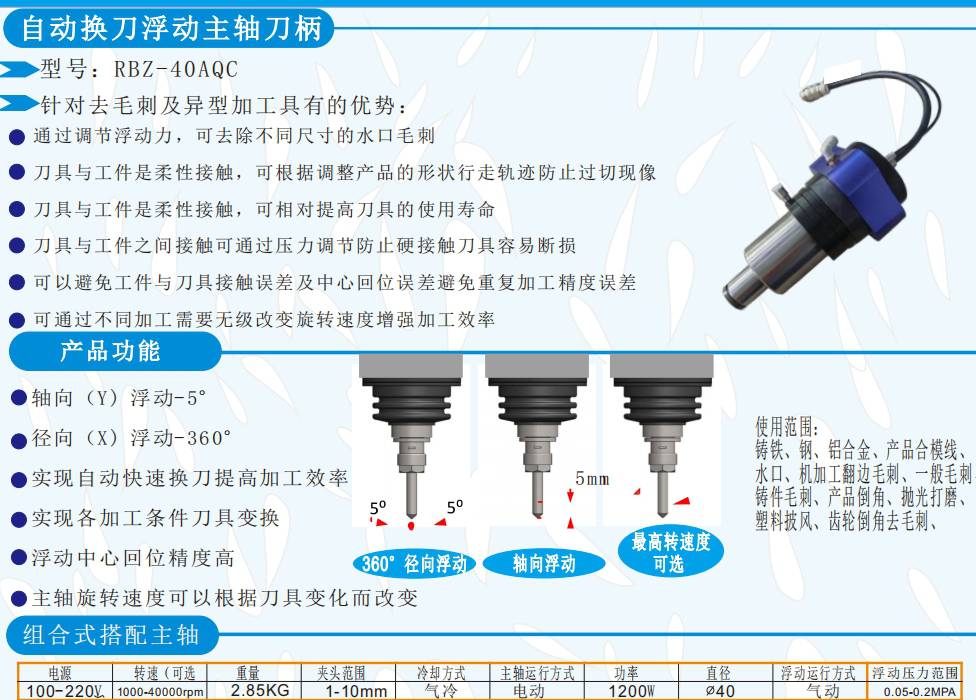 RBZ-40AQC浮动自动换刀主轴机器人去毛刺浮动去毛刺