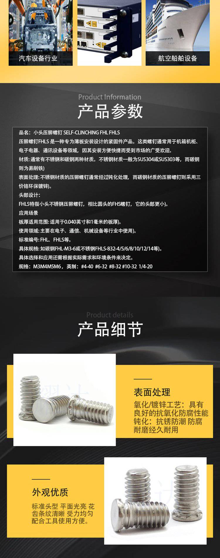 | 表面处理黑锌 | 产品规格FHL-M4-L |