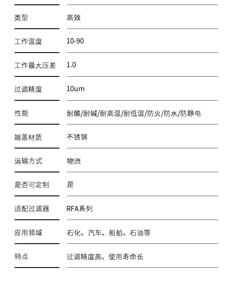 | 使用范围回油过滤器、滤油器等 | 特点拦截杂质、净化油液、高纳污 |