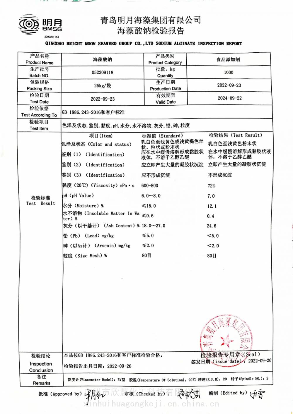 | 产品名称食品级海藻酸钠 | 品牌明月 |