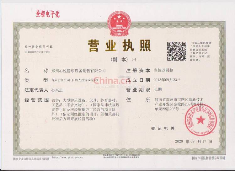 | 经营范围 | 销售:大型游乐设备,玩具,体育器材,工艺品(不含文物)。(国家法律法规规定禁止的及应经审批方可经营的项目除外) | ||