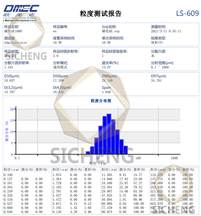 | 粒度1000目目 | 适用范围反应烧结陶瓷用绿碳化硅 |
