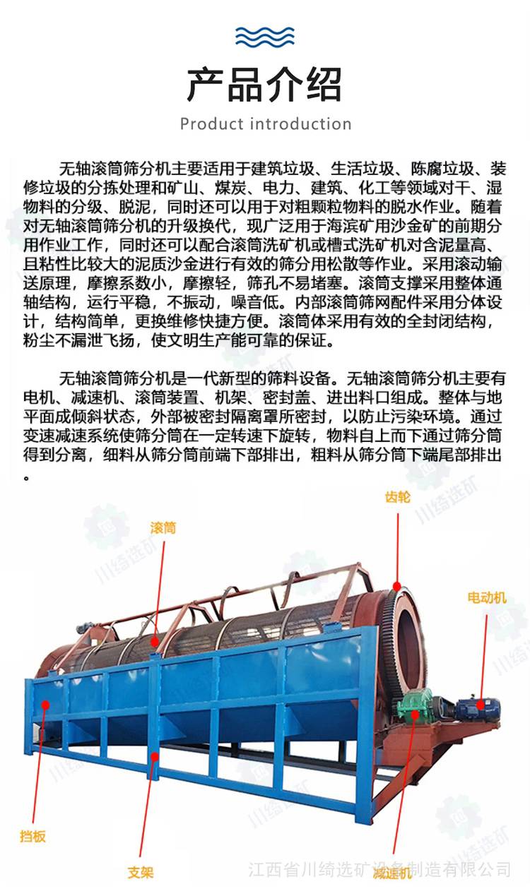 | 产品特性无轴滚筒筛 | 加工定制是 |