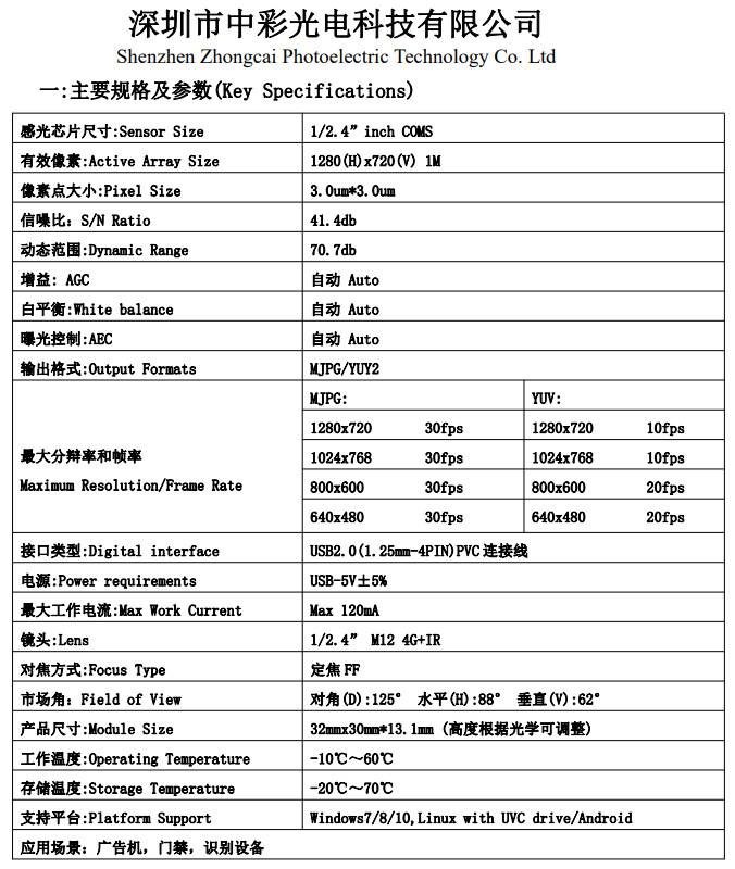 | 使用范围可视门铃,人脸识别,物体识别,监控拍照,指纹识别,掌纹识别,虹膜扫描 | 最高分辨率1280x720 |