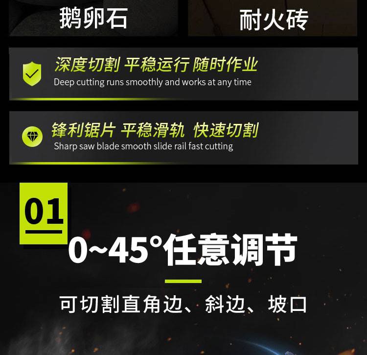 | 订货号DGQ1250 | 适用范围各种石材、瓷片、水磨石方砖、耐火材料 |