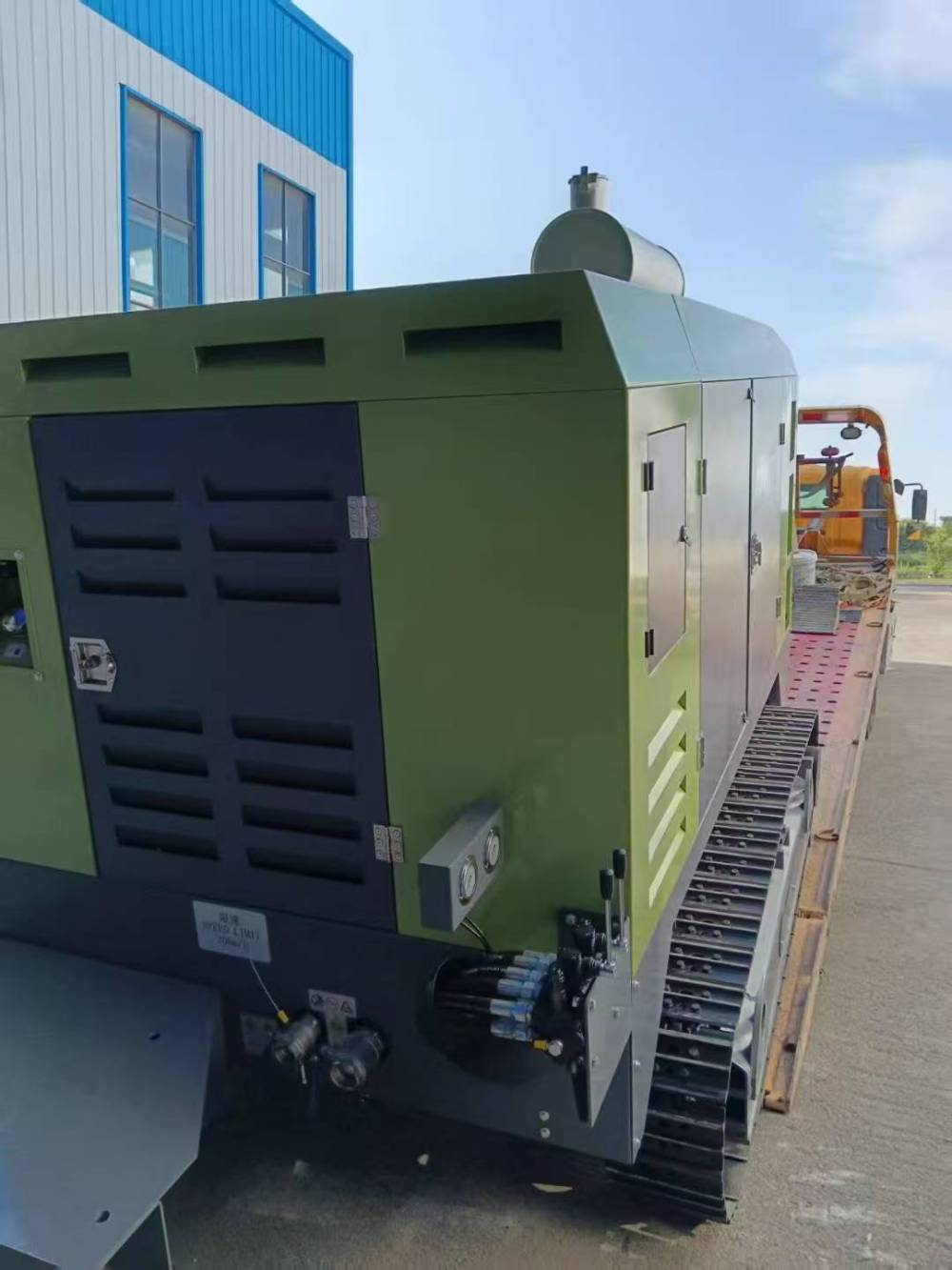 浩洋机械推出可以单独行走的螺杆机.履带底盘。独立操作行走。方便省事.