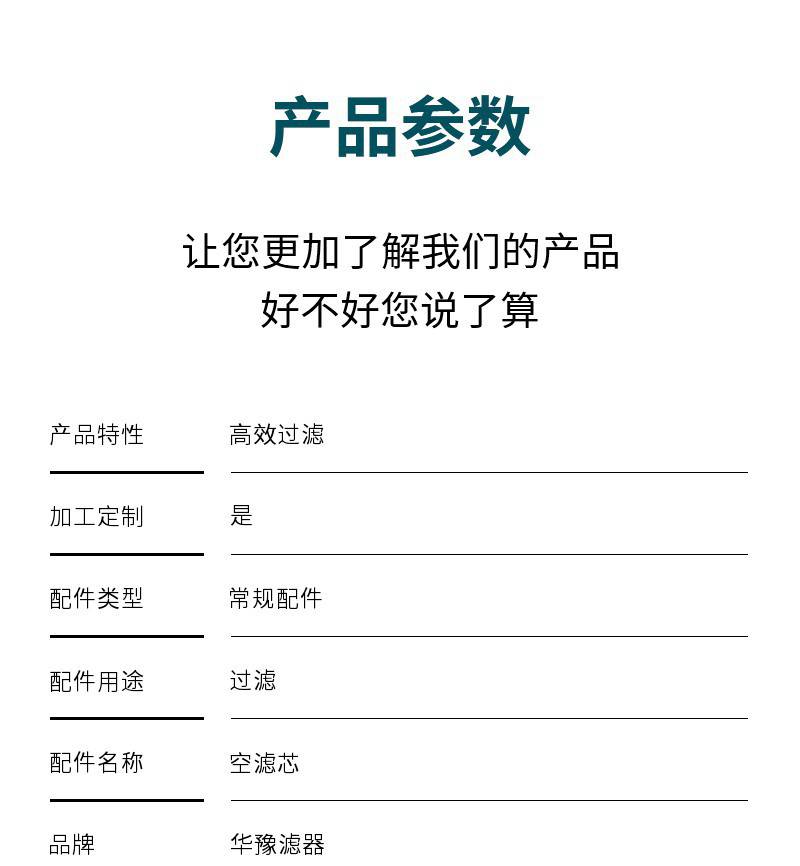 | 配件名称空滤芯 | 品牌华豫滤器 |