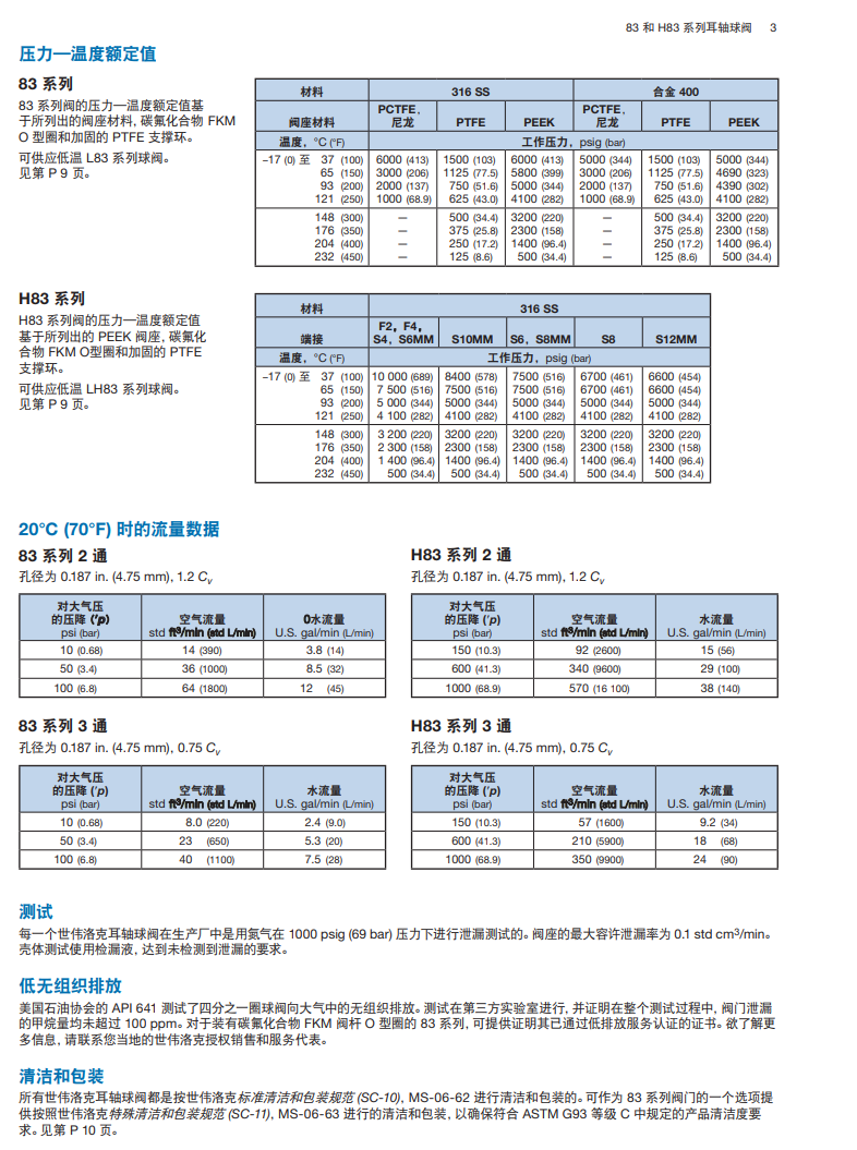| 孔径0.187 in /4.7 mm | 室温压力额定值6000 PSIG @ 100 °F /413 BAR @ 37 °C |